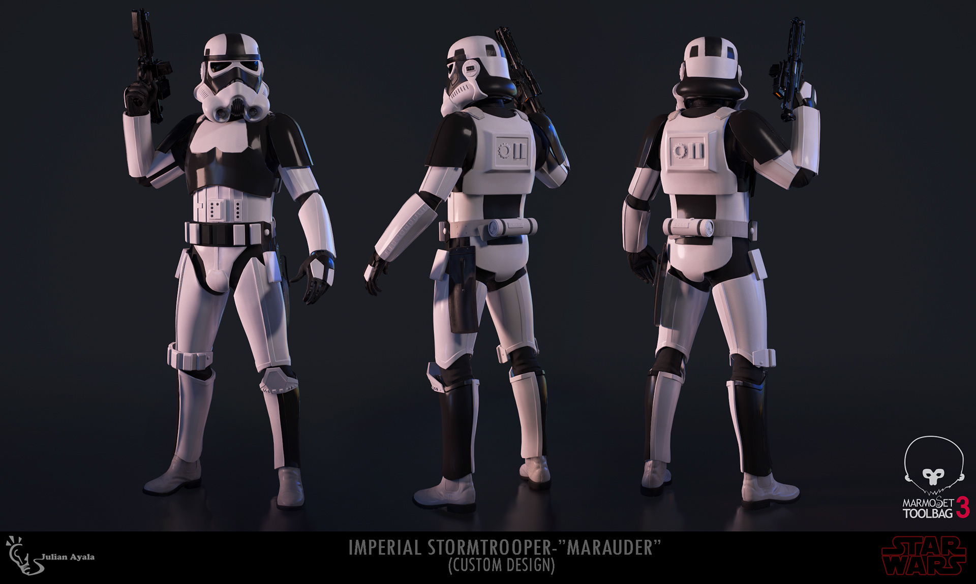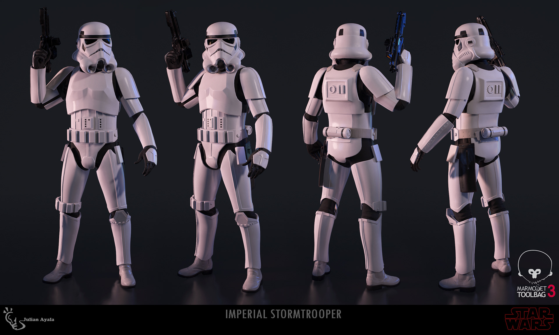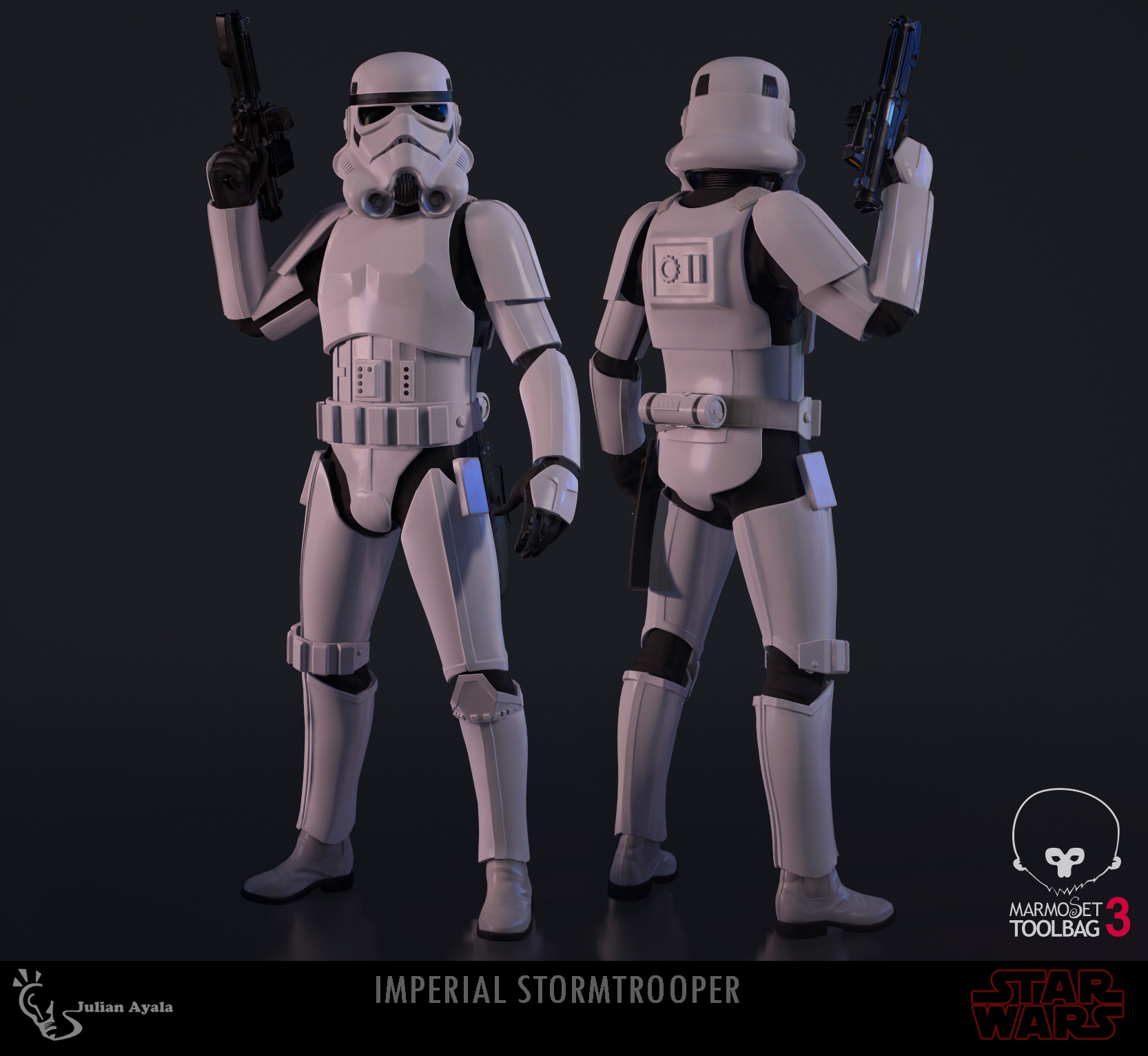This is an Imperial Stormtrooper I made based on the Star Wars franchise. I created the high poly in Zbrush. Textured the model in Substance Painter. The final mesh was rendered in Marmoset Toolbag 3.