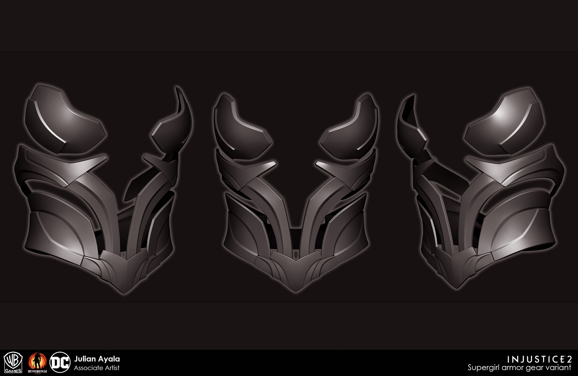 These are alternative gear pieces that I made for Supergirl. They can be acquired through the customizable gear system in Injustice 2. I sculpted the high poly armor using Zbrush